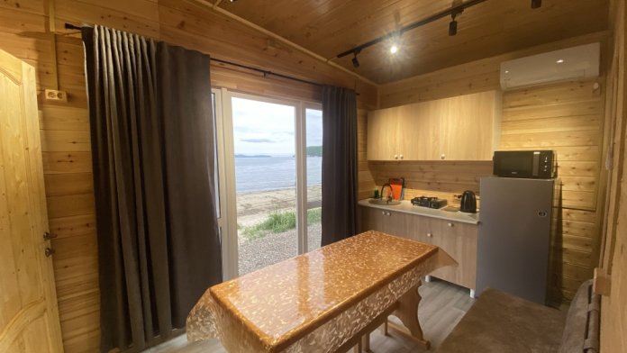 Питание организуется самостоятельно - в каждом домике имеется оборудованная кухонная зона. На территории базы отдыха есть бар. Территория ограждена и находится под видеонаблюдением, парковка бесплатная. Для гостей предусмотрен трансфер (доставка с г. Находка до базы отдыха и обратно).