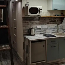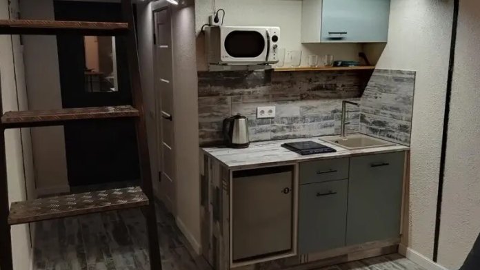 Новый ремонт, мебель, площадью 17,5 кв.м. (первый уровень) и 7,5 кв.м. (второй уровень), итого 25 кв.м с высотой потолков 4,2 м. Есть всё для комфортного проживания: телевизор, холодильник, микроволновая печь, стиральная машина, чайник, индукционная плита, кондиционер, спальное место на антресоли 180х200, дополнительное спальное место в основной части 160х200.