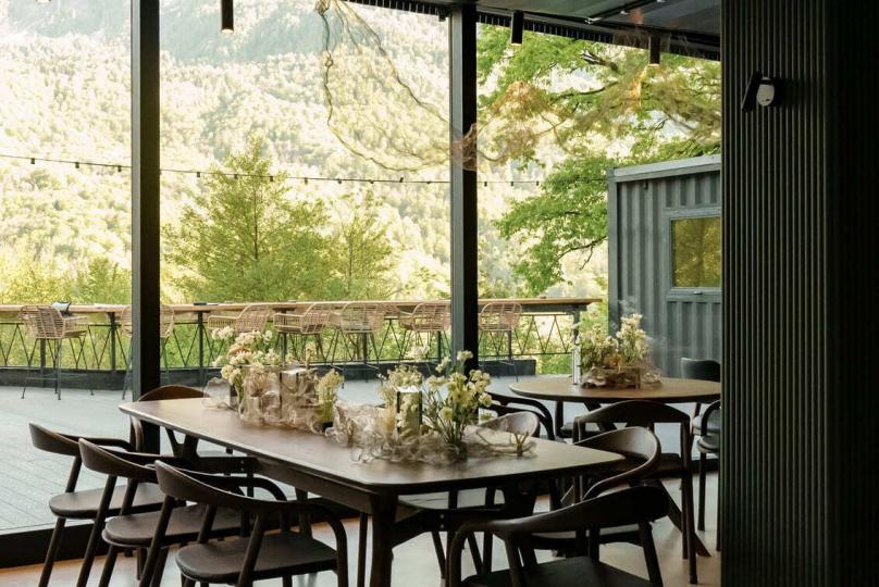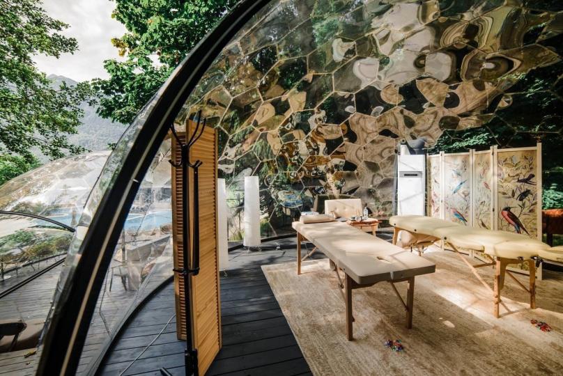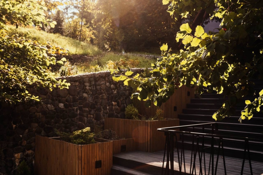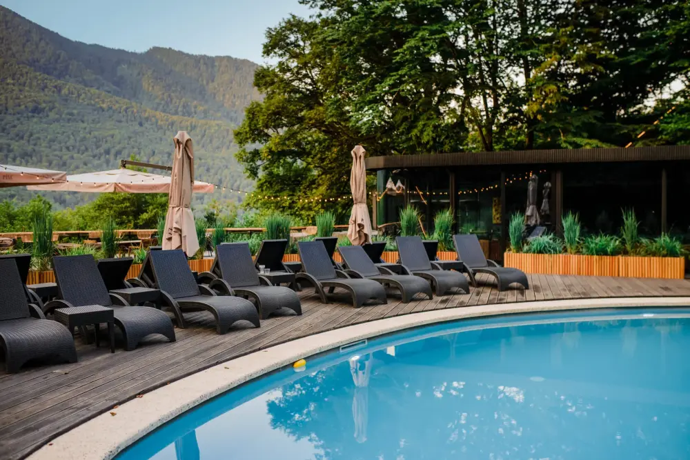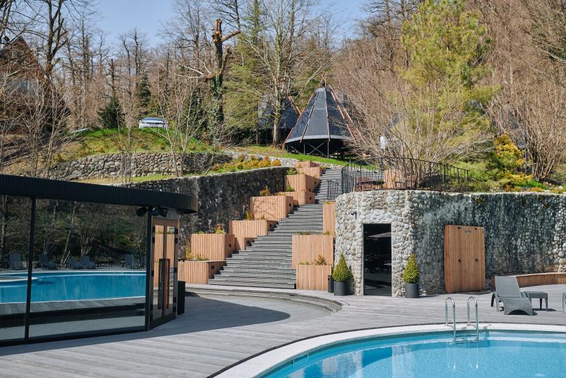 На территории распложен панорамный ресторан. В меню представлены блюда от шеф-повара сети — тандем европейской, кавказской и авторской кухни. В пляжном клубе есть стильная лаунж-зона у бассейна с шезлонгами, видовой бар с авторскими коктейлями и закусками, панорамная сауна. На территории отеля есть купольный массажный кабинет с завораживающим видом, где работают сертифицированные массажисты.
