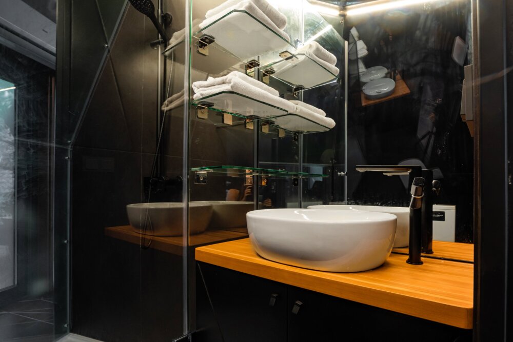 Номерной фонд отеля состоит из 27 домиков НеоТипи и в каждом из них эксклюзивный интерьер. Внутреннее оформление, мебель и элементы декора с особой заботой и вдохновением подобраны дизайнерами. Сделали акцент на натуральных материалах, приятных фактурах и спокойных тонах. Все для того, чтобы с первых минут вы ощутили гармонию и чувство единения с природой. Домики оснащены местом для хранения вещей, кондиционером, Wi-Fi, столиком со стульями, мини-холодильником, чайником и ванной комнатой. Гостям предоставляются полотенца, тапочки, халаты и косметические принадлежности.