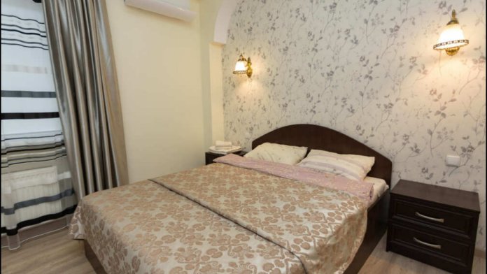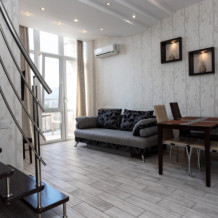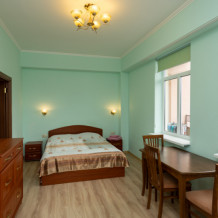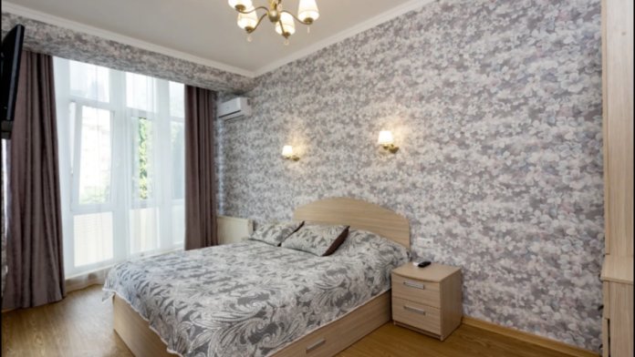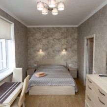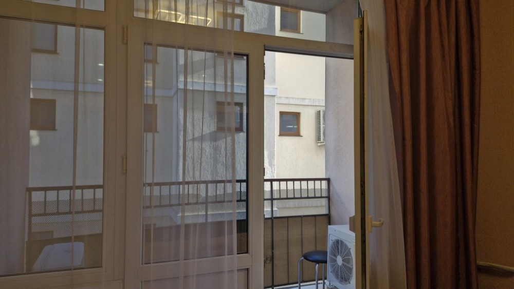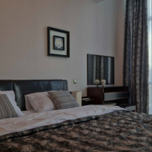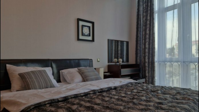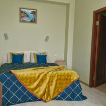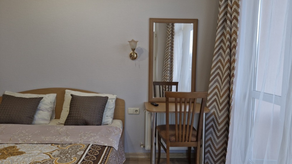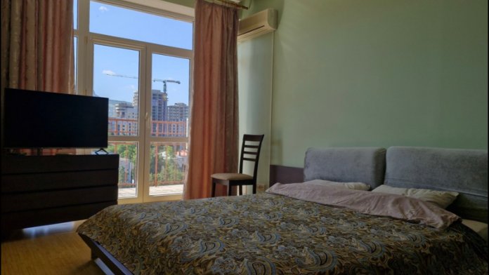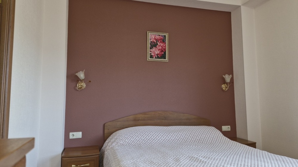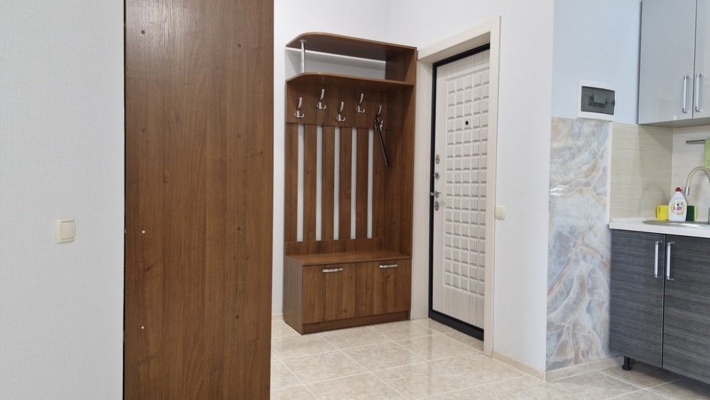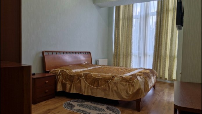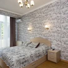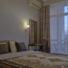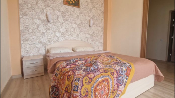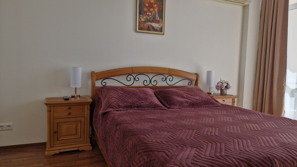 Квартира состоит из комнаты, с прихожей, кухни и совмещенного санузла. В квартире есть мебель – двуспальная кровать, кресло-кровать, шкаф, комод, оборудованная кухня с электроплитой, холодильник, микроволновка, чайник электрический, необходимая посуда, кондиционер, спасающий от летней жары, телевизор, интернет. Есть балкон с балконной мебелью, площадью – 7 кв.м. с которого открывается хороший вид.