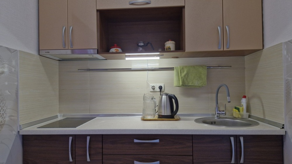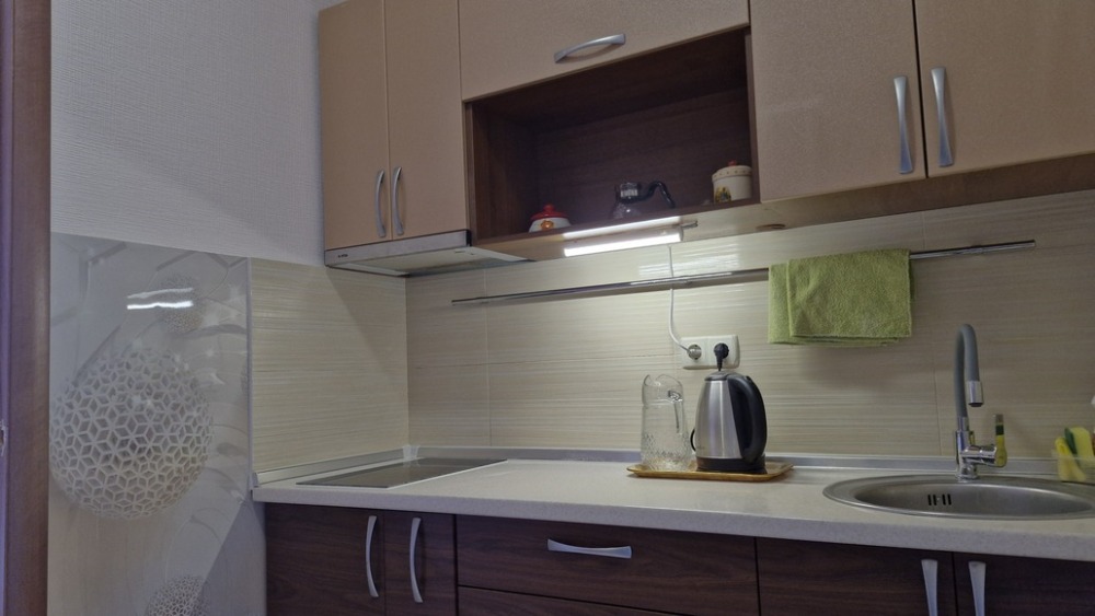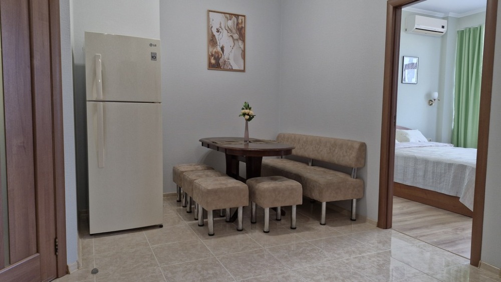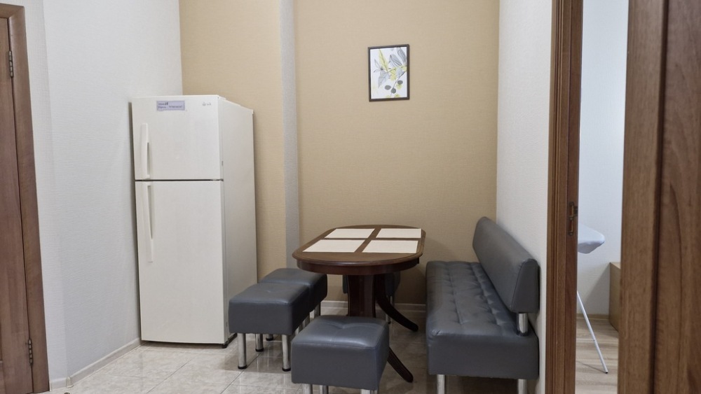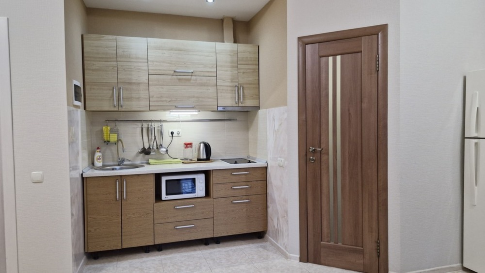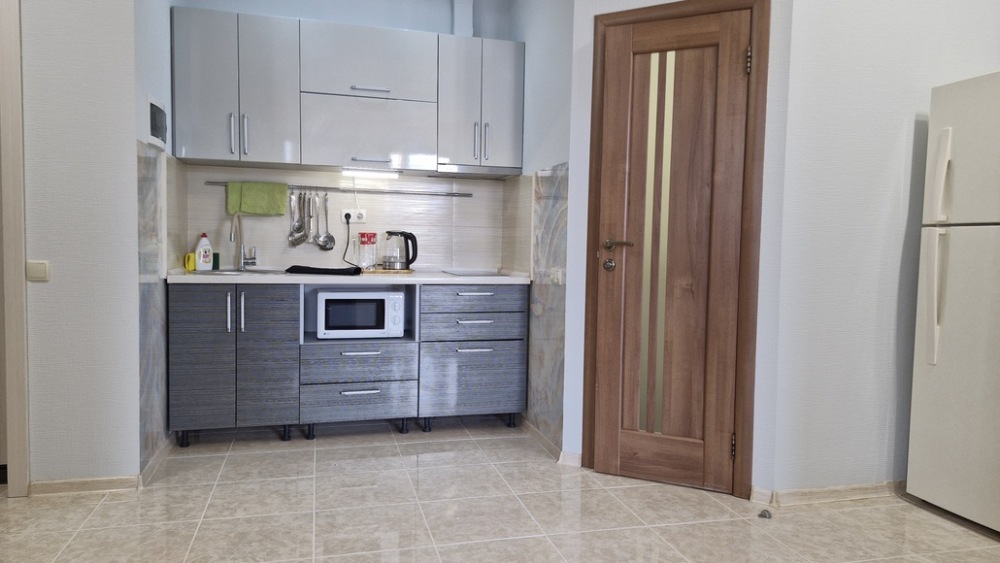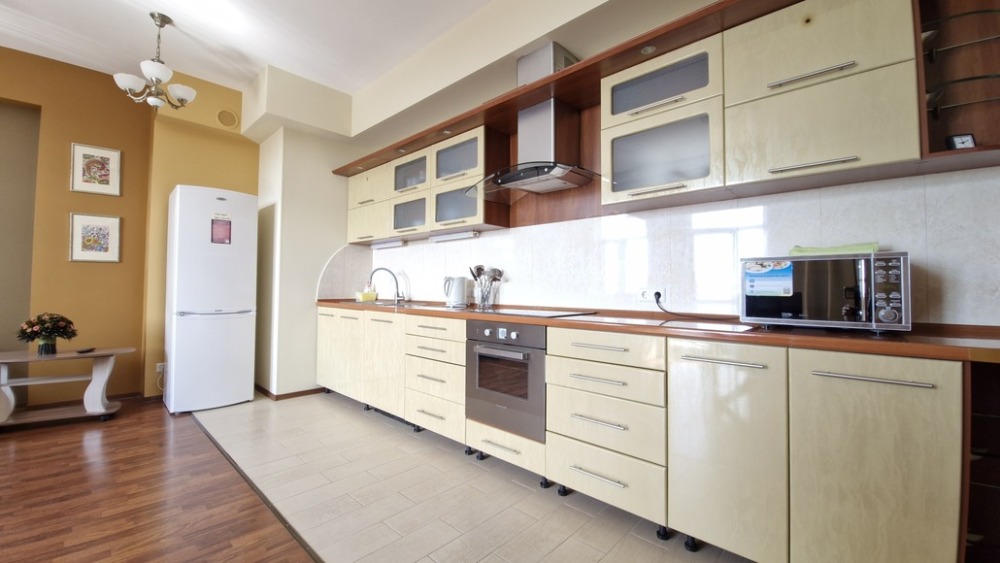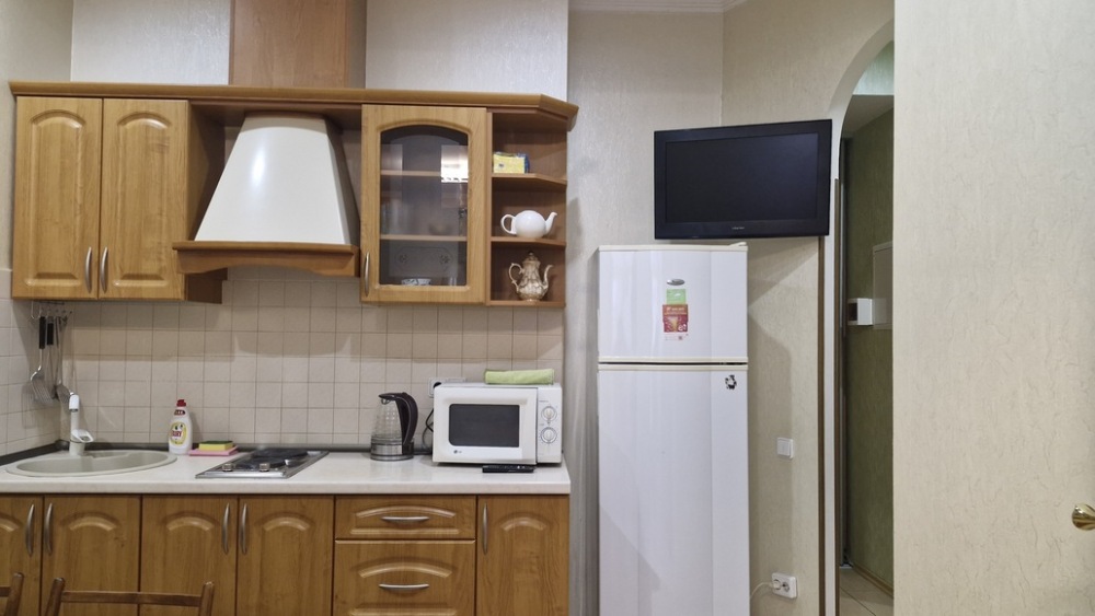 Кухня в квартире оборудована необходимой бытовой техникой, также мы предоставляем посуду и столовые приборы.