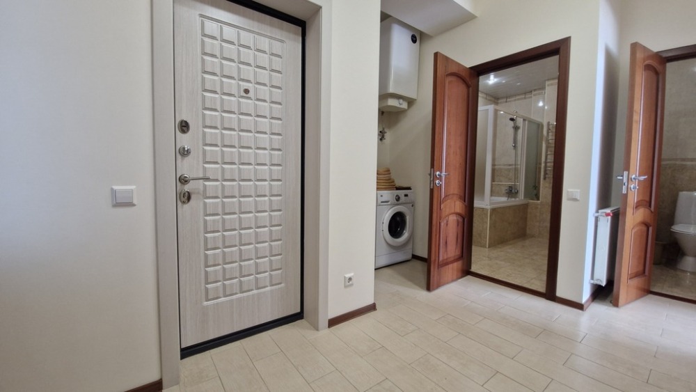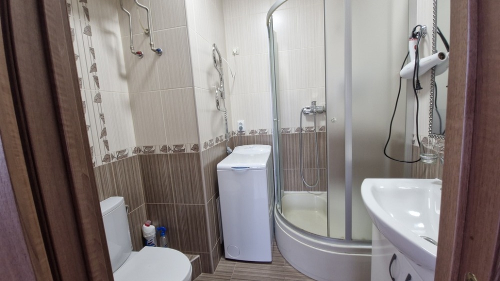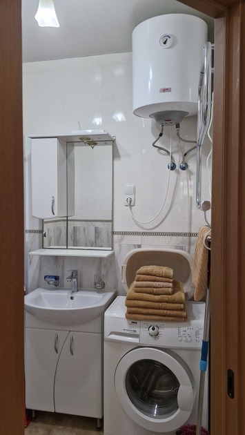 Два санузла, стиральная машина, сушилка, утюг, гладильная доска.
