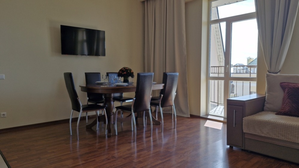 Мы круглый год предлагаем для аренды современные и комфортабельные одно-, двух- и трёхкомнатные квартиры «под ключ» на разных этажах и разных типов. В каждой квартире своя кухня с оборудованием и посудой, кондиционеры, мебель, мягкая мебель, спутниковое ТВ и быстрый беспроводный интернет Wi-Fi, стиральные машинки, панорамные балконы с разнообразными видами на море, горы или город. Все санузлы оборудованы душевыми кабинками. Всё включено: коммунальные услуги, постельное белье, полотенца, бытовая химия.