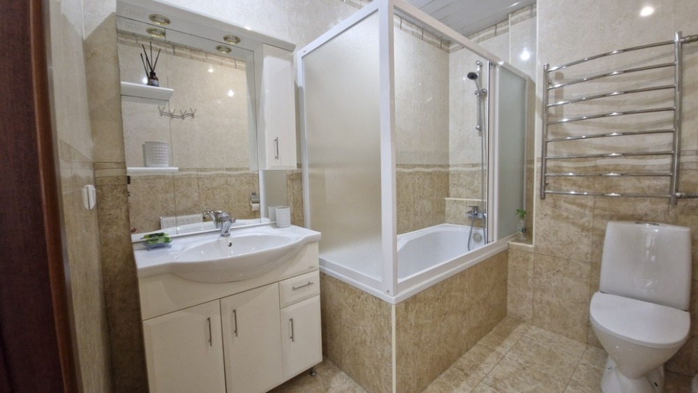 3 санузла: 2 с душевыми кабинами, 1 гостевой.