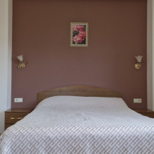 Спальная зона: двуспальная кровать с ортопедическим матрасом, прикроватные тумбы, светильники с индивидуальными выключателями;