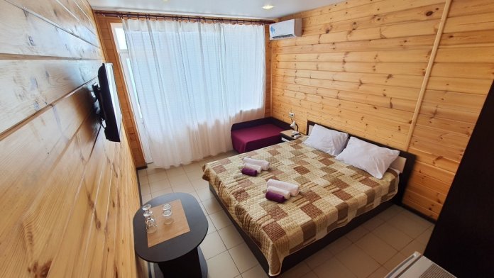 Номера укомплектованы двуспальными кроватями с новыми ортопедическими матрасами и небольшими диванами. В каждом номере есть удобная мебель, телевизор, кондиционер и бесплатный Wi-Fi. Ванная комната оборудована водонагревателем и феном.