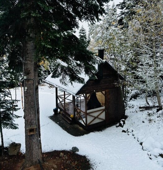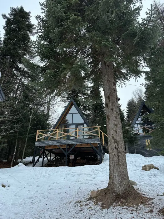 А-фрейм или треугольный дом, дом-шалаш с панорамной стеной, выходящей на горы и лес. Много света и воздуха дизайнерский ремонт и уютная атмосфера. Дом для комфортного проживания круглый год. Теплый пол и электрическое отопление. Теплый туалет и горячая вода круглосуточно. В доме есть телевизор и wi-fi . Кухонная зона, оснащена всем необходимым: холодильник, электрическая плита, кофеварка, чайник, микроволновая печь и набор посуды.