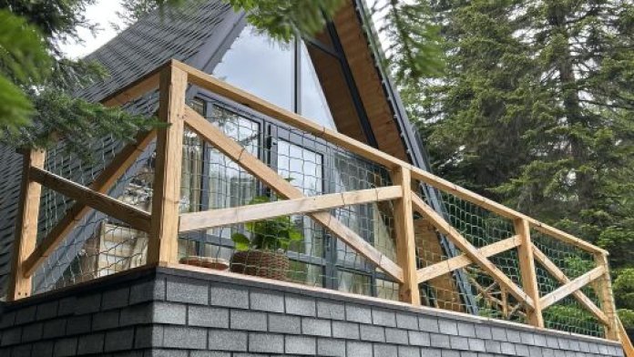 Снаружи А-фрейма есть просторная терраса, где Вы сможете наслаждаться свежим воздухом и панорамными видами на горы. Здесь Вы можете проводить время с друзьями или семьей, готовить шашлык на гриле или просто наслаждаться уютной атмосферой.