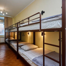 Просторный и светлый 6-местный номер. У каждой кровати свой светильник, розетка стандарт, розетка usb. Присутствуют места для хранения вещей, фен. Порадуют гостей ортопедические матрасы, шторы блэкаут и натуральное хлопковое постельное белье. Присутствует кондиционер. Для гостей данного номера доступен общий раздельный санузел с душевой кабиной, гладильные принадлежности и чайная станция с кофеваркой, чайником, фильтром для воды и всей необходимой посудой.
