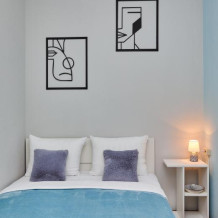 Светлый двухместный номер категории стандарт порадует гостей ортопедическим матрасом, шторами блэкаут и натуральным хлопковым постельным белье. В номере есть места для хранения вещей, фен. Номер выполнен в сдержанных тонах с лиловыми акцентами и имеет индивидуальное название «Линии Петербурга». Для гостей данного номера доступен общий раздельный санузел с душевой кабиной, гладильные принадлежности и чайная станция с кофеваркой, чайником, фильтром для воды и всей необходимой посудой.
