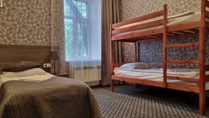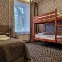 Четырёхместный семейный номер категории эконом, с двумя отдельными кроватями и 2-ярусной кроватью.