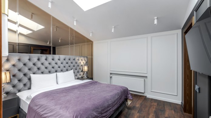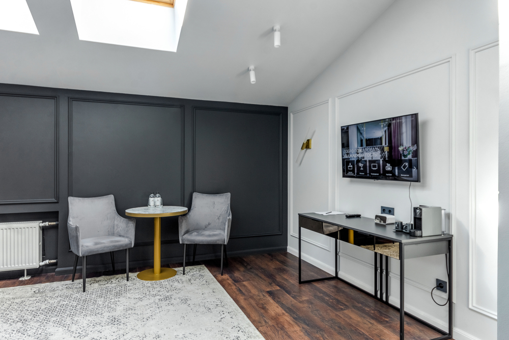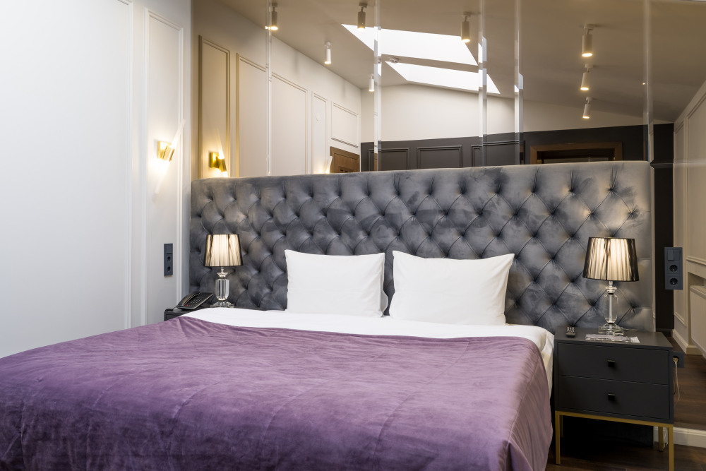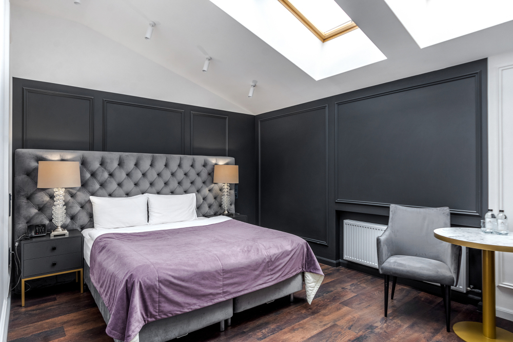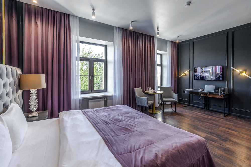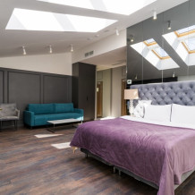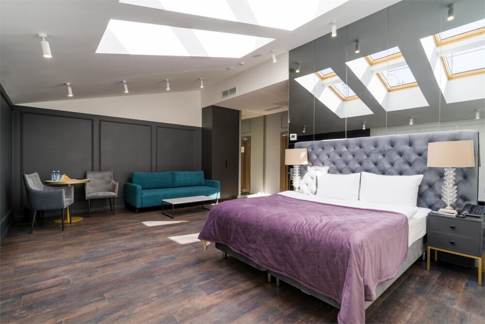 В отеле предусмотрен эксклюзивный номер премиальной категории «Мансардный Люкс», площадью 56 кв.м., расположенный на 5 (последнем) этаже отеля.