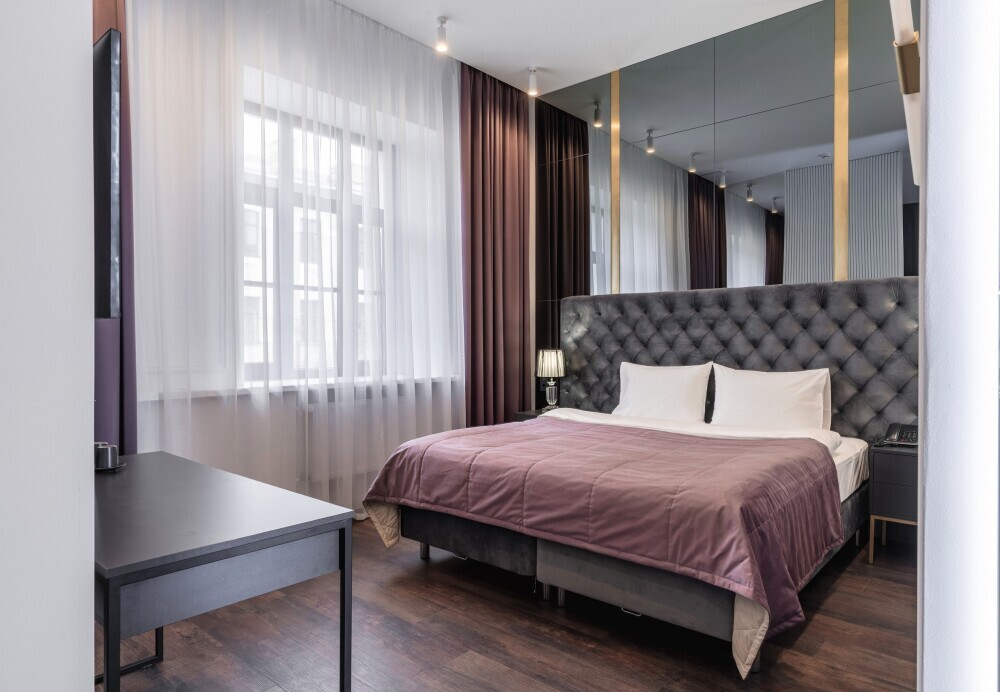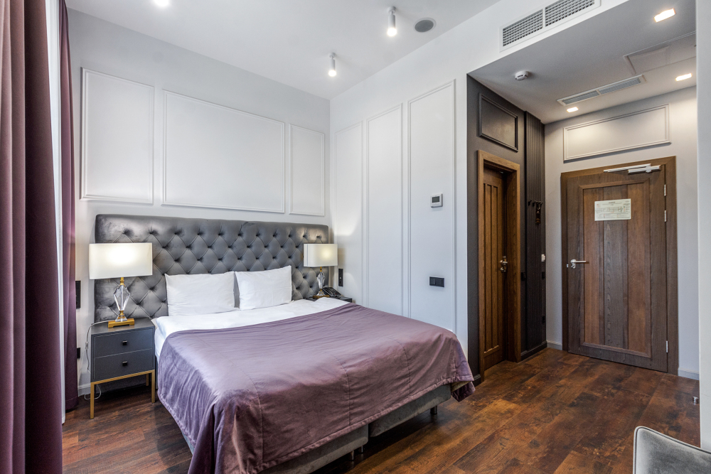 Светлые эргономичные номера в стиле ар-деко являются отличным вариантом для одноместного и двухместного размещения гостей города.