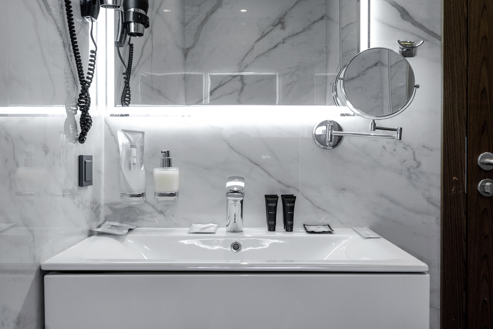 Дополнительной комплектацией номера является зубной, бритвенный и косметический наборы, халат и тапочки, щетка для одежды и расческа.