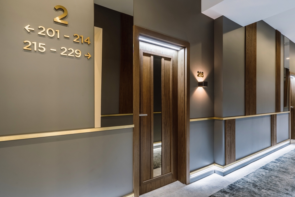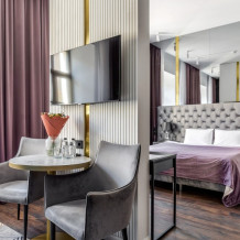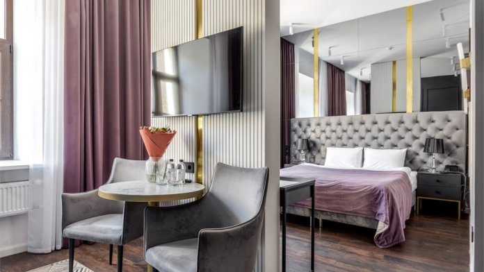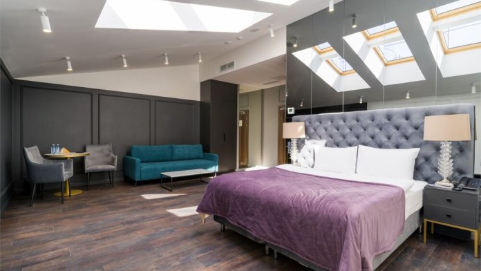 Отель включает в себя номера площадью от 21 до 56 кв. метров с различными вариантами планировочных решений: от мансардных номеров «Стандарт» до просторных двухкомнатных номеров «Люкс» с кухонной зоной.