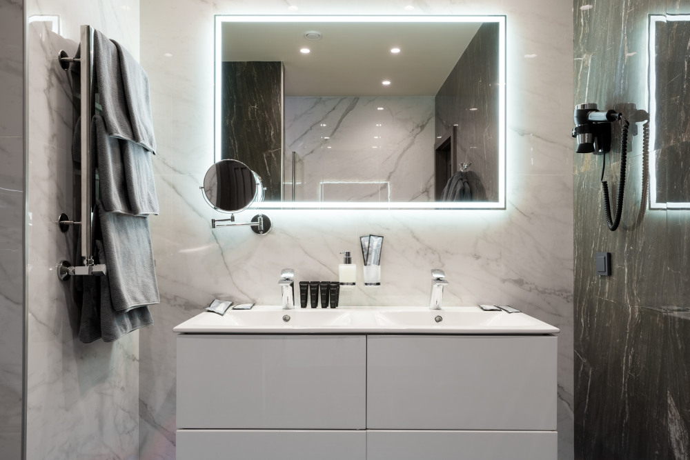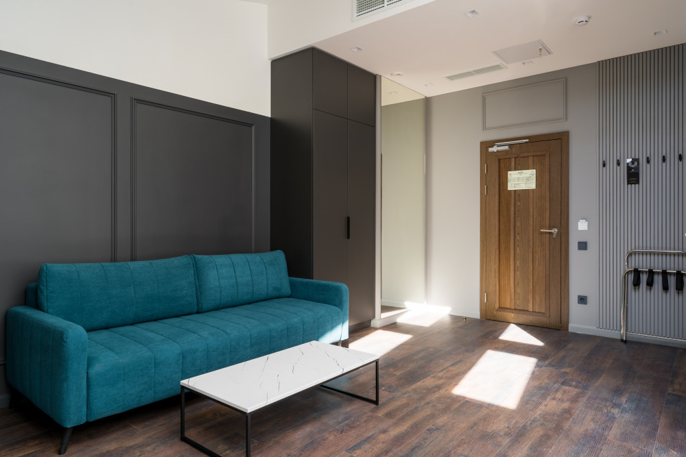 В номерах: две кроватяи-трансформеры, зона для работы и отдыха в виде стола и дизайнерских кресел, кухонный уголок с необходимой бытовой техникой (микроволновая печь, холодильник, варочная панель). Номера имеют повышенную шумоизоляцию и плотные шторы блэк-аут, что способствует комфортному пребыванию и спокойному отдыху. Ванная комната оборудована душевой кабиной, туалетом, феном и банными принадлежностями.