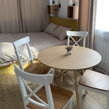 Комфортные апартаменты-студия с кухней, стиральной машиной, высокоскоростным интернетом. В апартаментах с комфортом может расположиться до 4-х человек на полноценных спальных местах: полноценное двухспальное размещение на галерее и диван-кровать. Шторы блэкаут, банные и постельные принадлежности, тапочки, чайно-кофейный набор для чашки чая или кофе после дороги. Отдельный вход позволяет легко перенести багаж из машины.