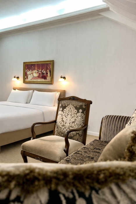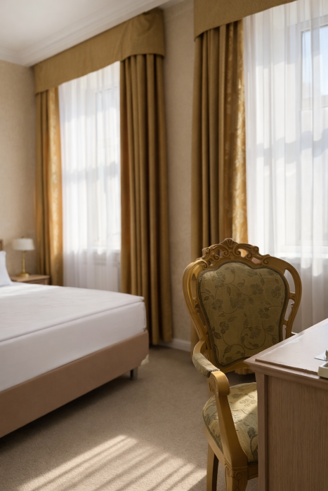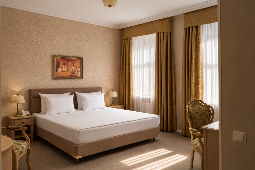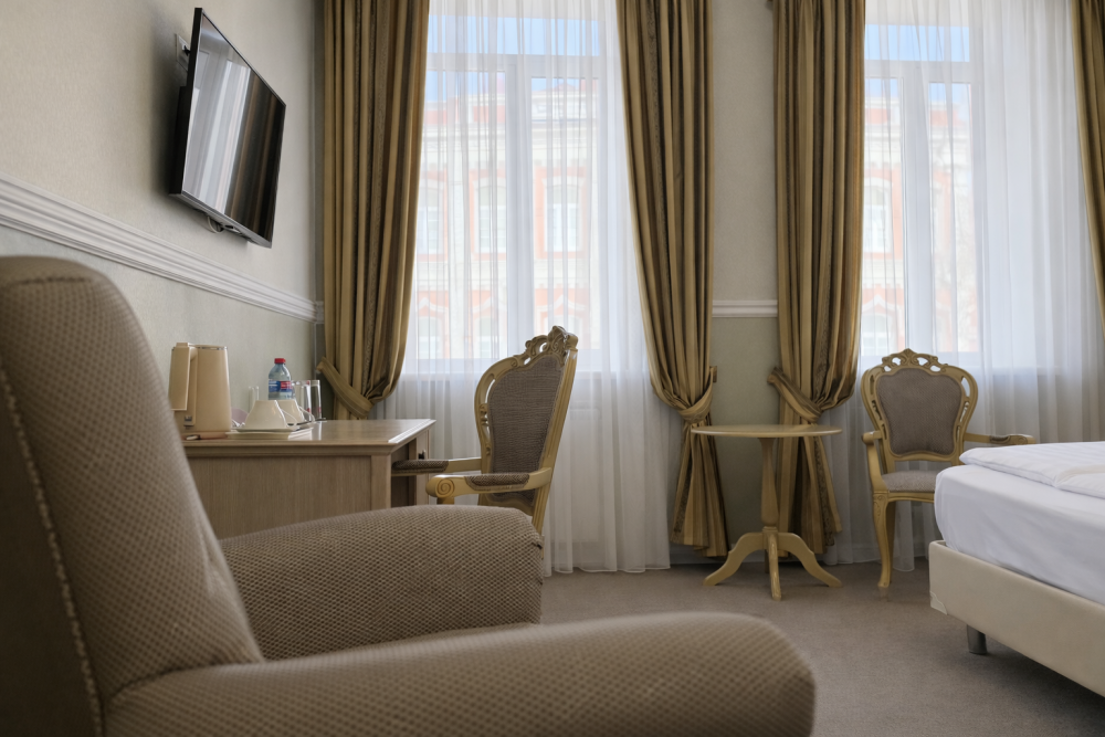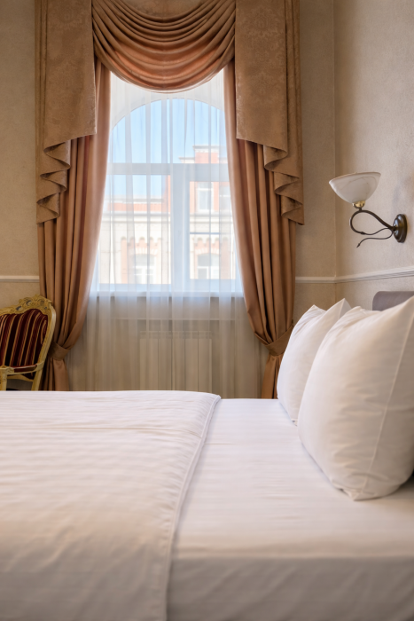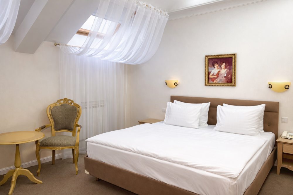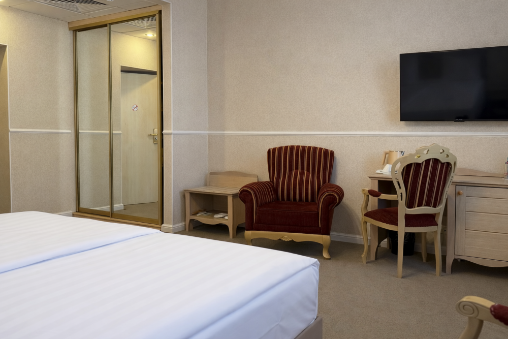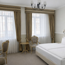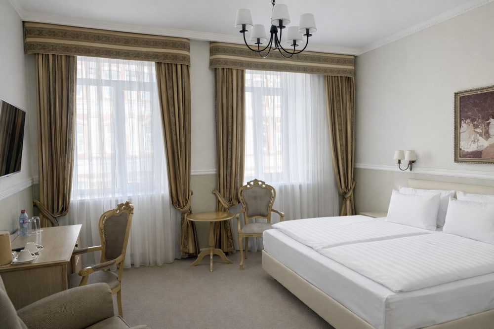 К Вашим услугам в гостинице 31 номер различных категорий: люкс, джуниор сюит, номера первой категории. Номера располагают всем необходимым для комфортного проживания: рабочее место, спальный гарнитур, ванная комната с душем или ванной, сейф, мини-бар, кабельное телевидение, Wi-Fi.