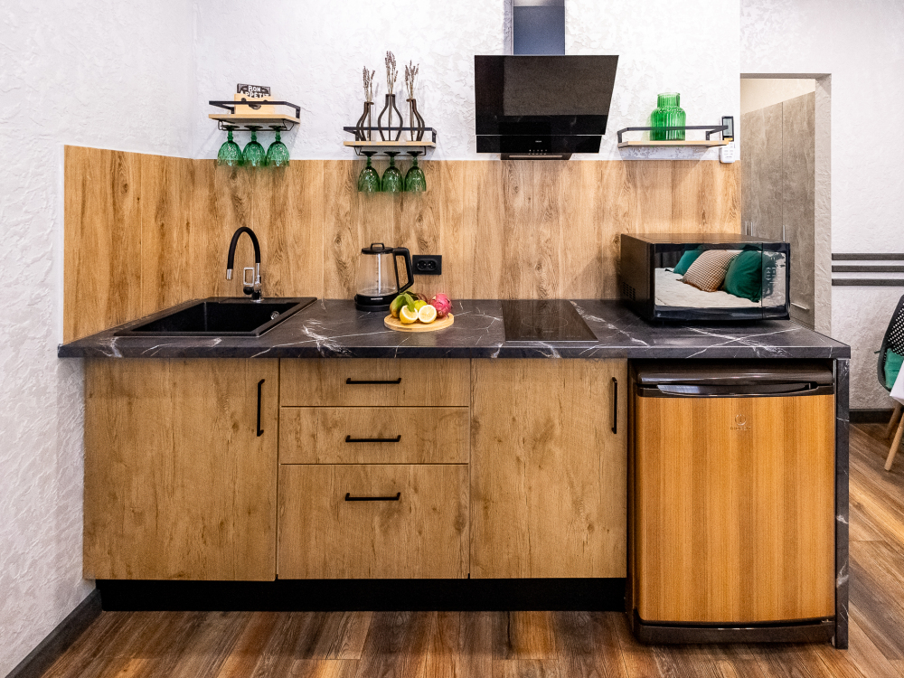 • Полностью оборудованная кухня: Приготовьте любимые блюда, используя современную технику и посуду.