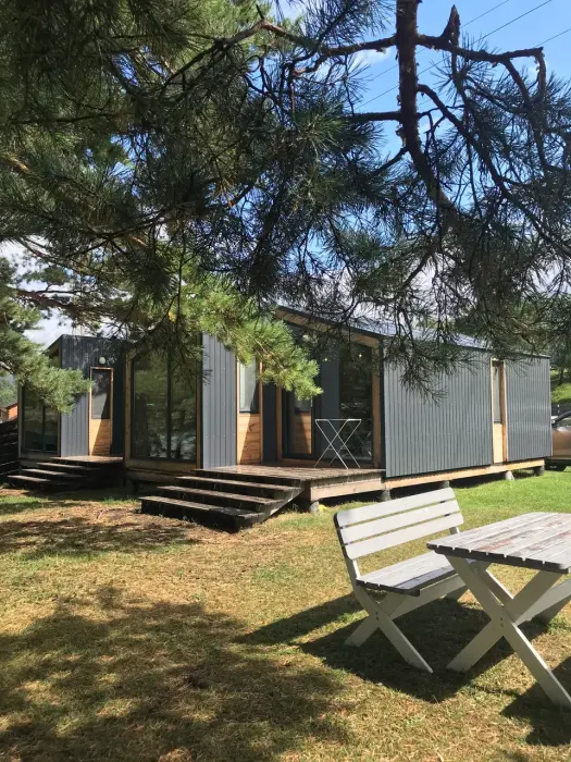 На территории глэмпинга бесплатная парковка, Wi-Fi, лавочки с мангальной зоной, гамак и детская площадка.
