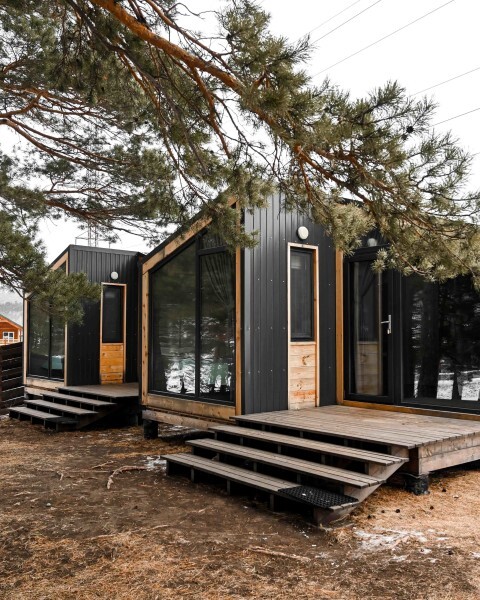 Для размещения гостям предлагаются домики с панорамными окнами открывают захватывающий вид на Катунь, нетронутые сосны и величественные горы. Внутри гостей ждет уютный дизайнерский интерьер и аромат настоящего дерева. Домики оборудованы всем необходимым для комфортного проживания: комфортные спальные места, оборудованная посудой и техникой кухонная зона, в ванных комнатах теплые полы. Все дома расположены на первой береговой линии.
