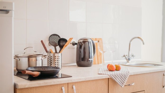 Трёхместный благоустроенный номер для троих гостей с одной двуспальной кроватью и одной односпальной кроватью. С кухней и ванной комнатой в номере.