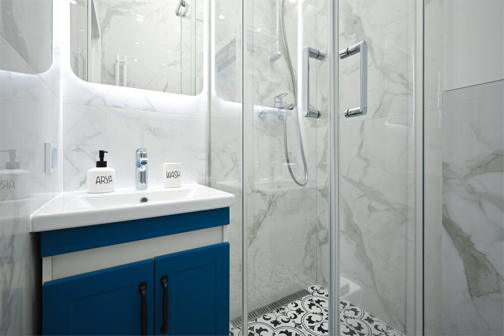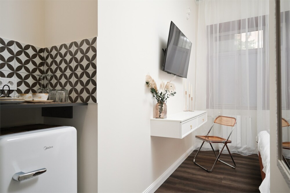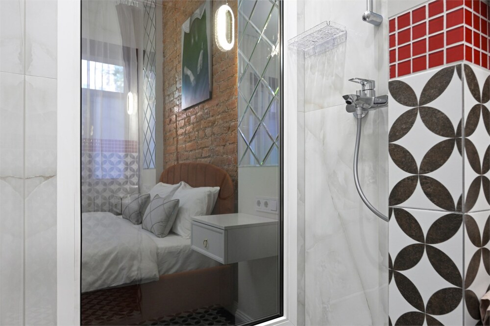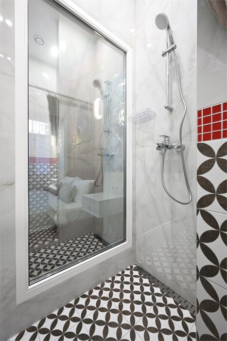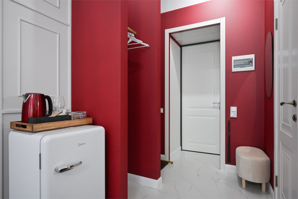 В каждой комнате имеется свой отдельный санузел с душем, а также холодильник, чайник. Дополнительно для гостей есть фен, утюг и гладильная доска. На всей территории доступен высокоскоростной Wi-Fi.