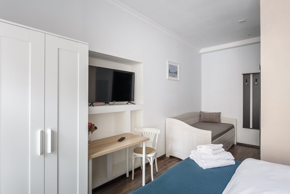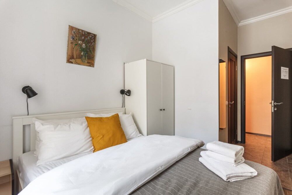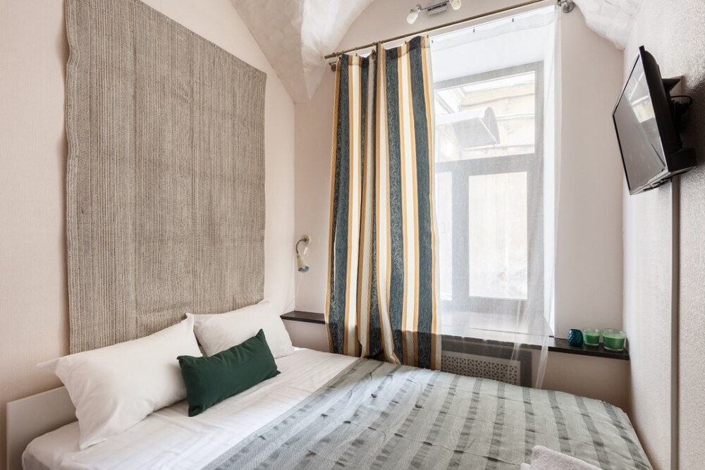 Уютная комната для сдачи посуточно с видом на улицу для двоих гостей в центре Петербурга у Исаакиевского собора. Стиральная машина и утюг – в общем доступе. Общая кухня, где можно приготовить еду.