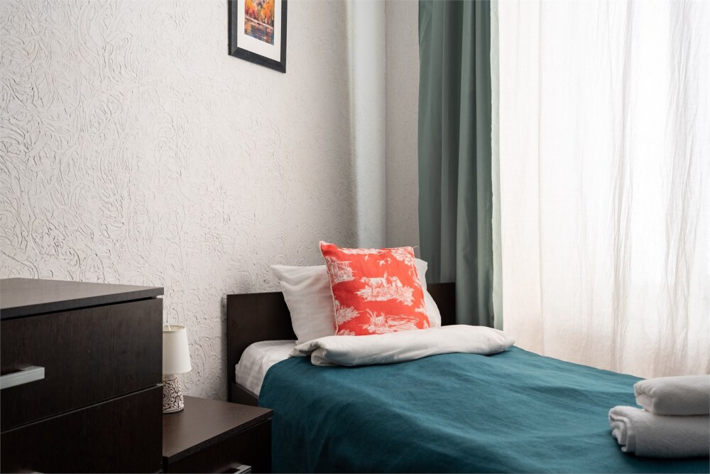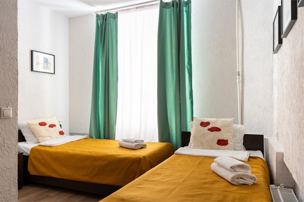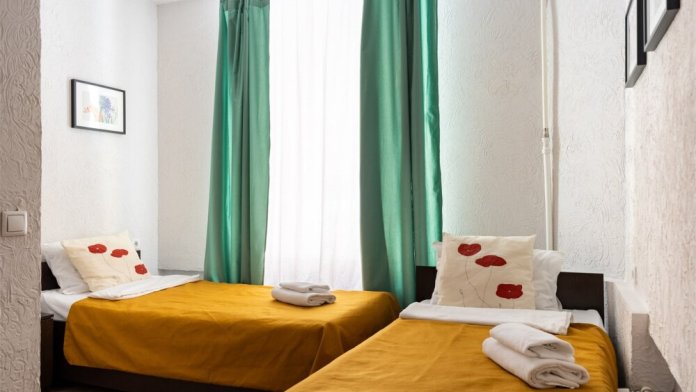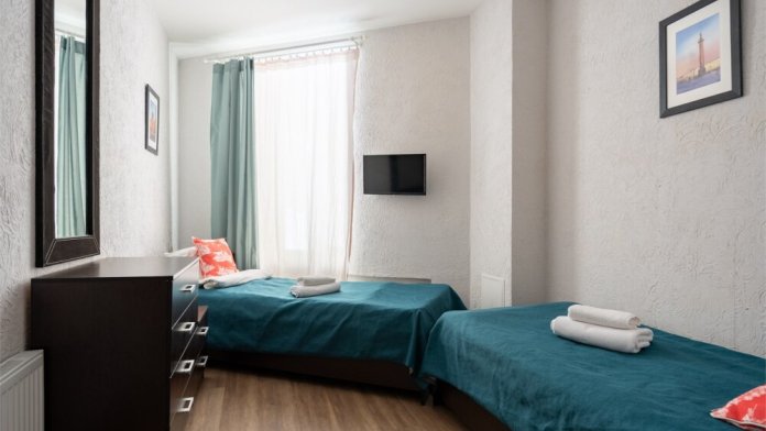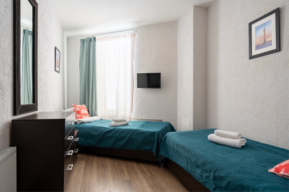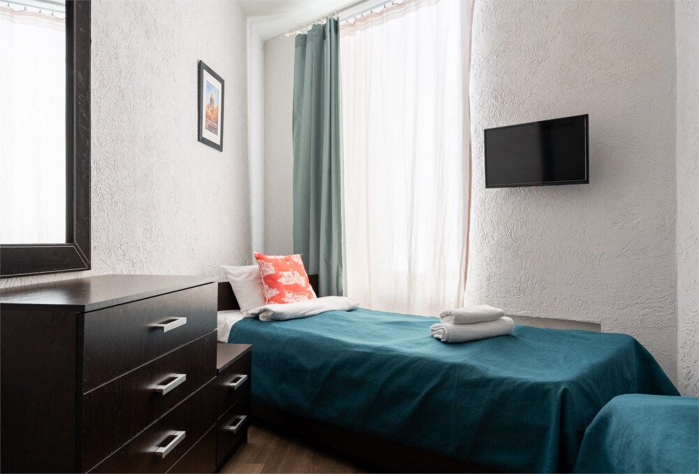 Комната для сдачи посуточно с видом на улицу для двоих гостей в центре Петербурга у Петропавловской крепости.