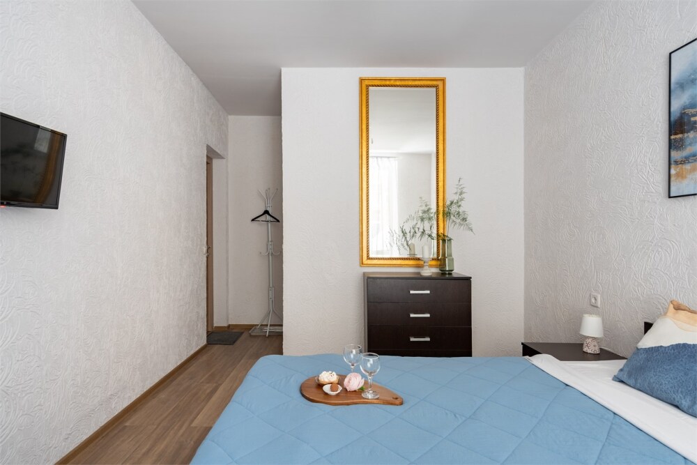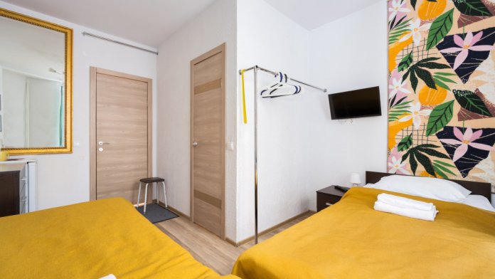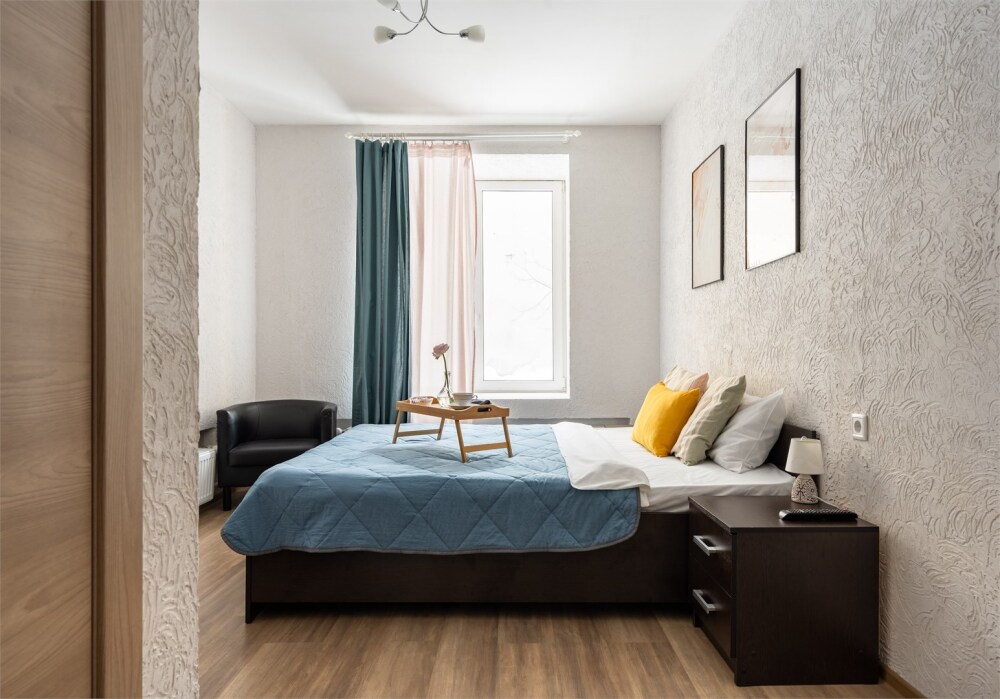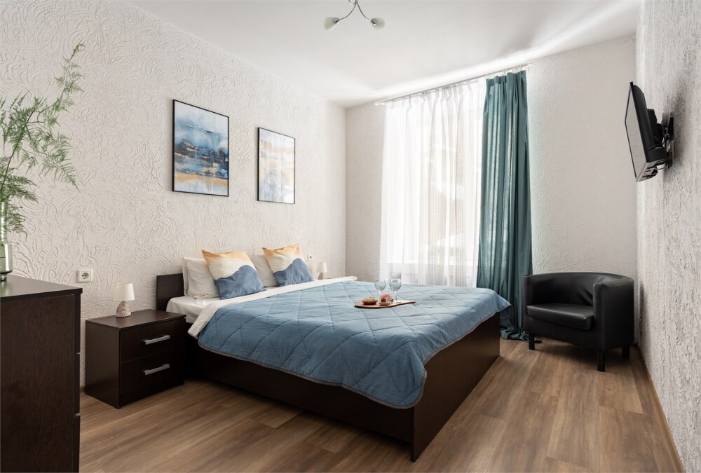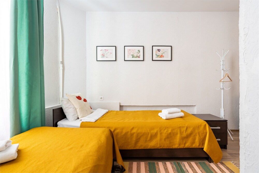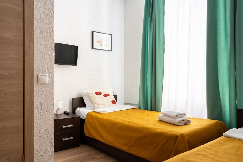 Комната для сдачи посуточно с видом на улицу для двоих гостей в центре Петербурга у Петропавловской крепости.