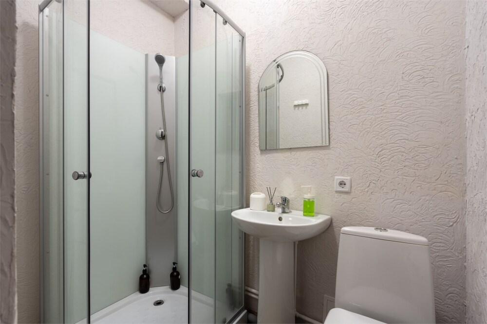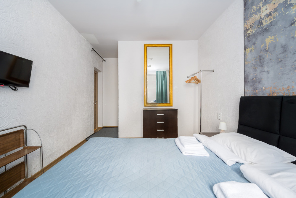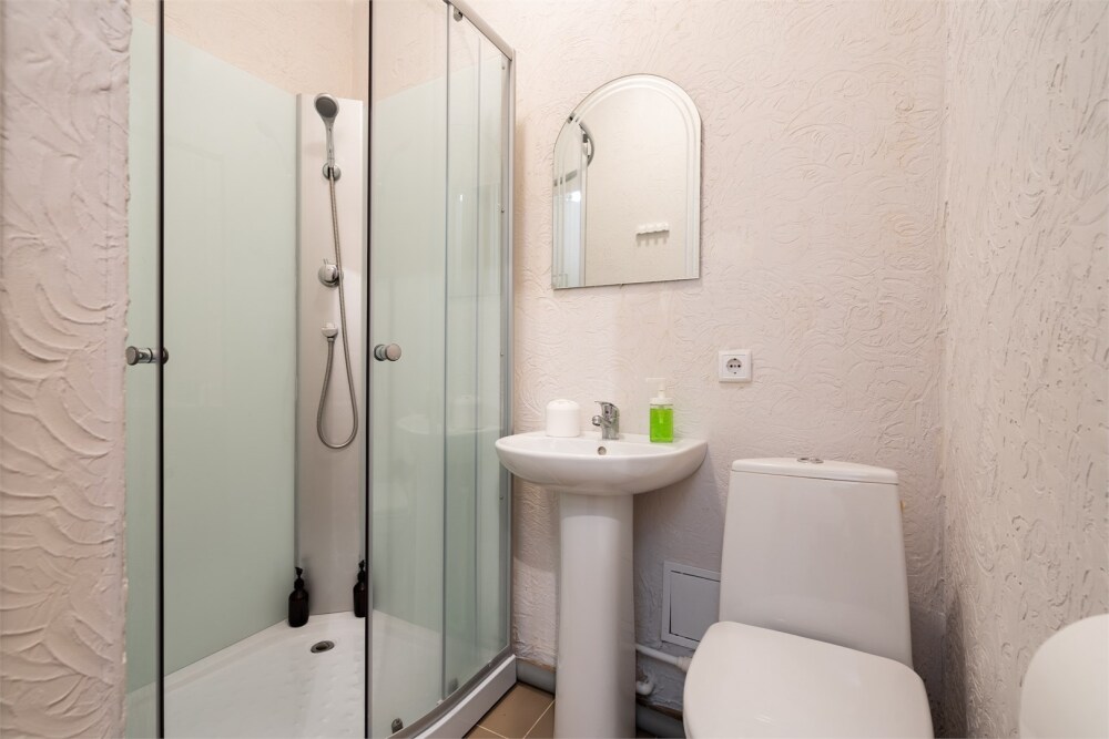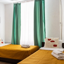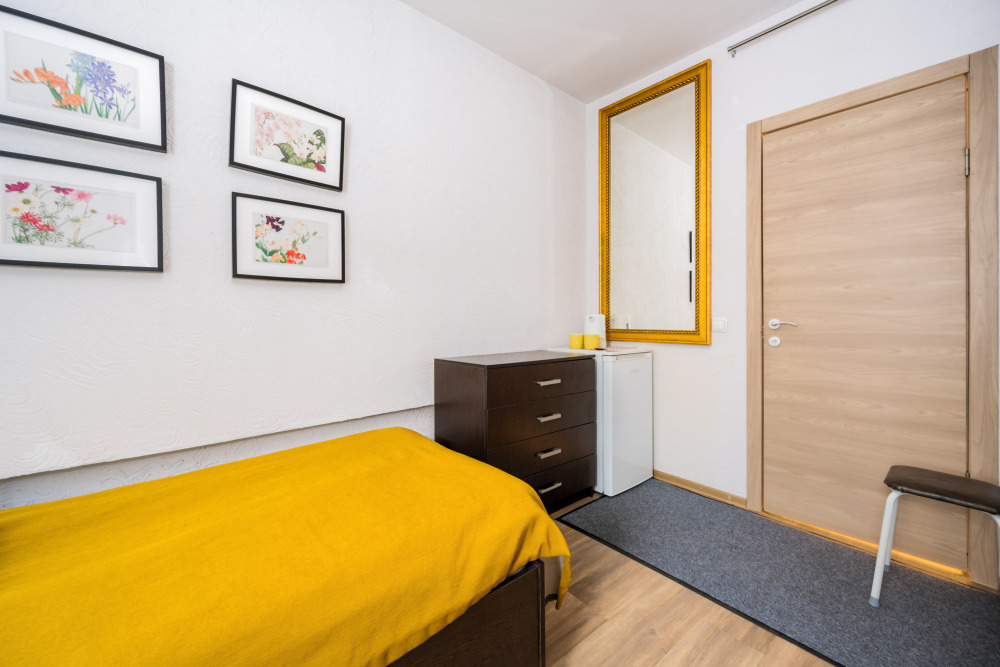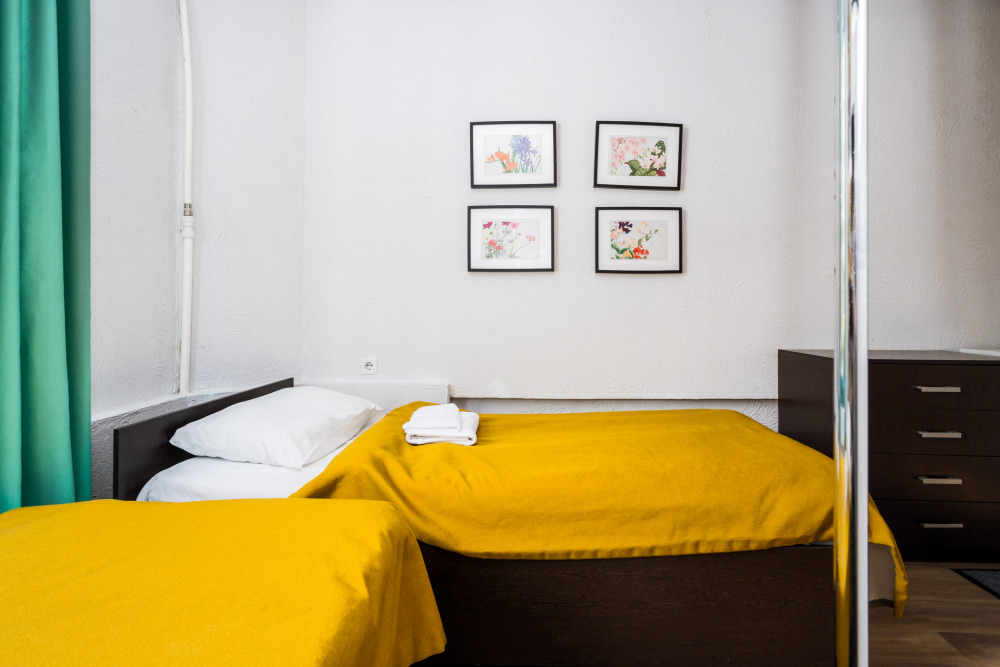 Комната для сдачи посуточно с видом на улицу для двоих гостей в центре Петербурга у Петропавловской крепости. Собственный совмещенный санузел.