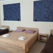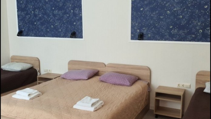 Трёхместный 2-комнатный номер с тремя раздельными односпальными кроватями. По желанию гостя две кровати могут трансформироваться в одну большую кровать.