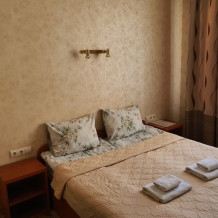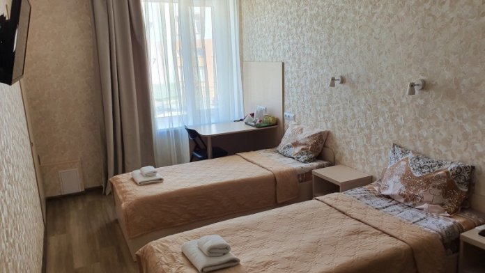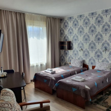 Однокомнатный номер с двумя раздельными односпальными кроватями, Wi-Fi, ТВ, телефон (внутренний), прикроватные тумбочки 2 шт., ночные светильники 2 шт., холодильник, чайная станция.