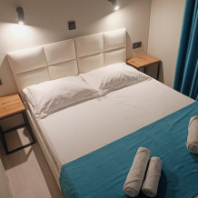 Четыре номера такого плана на втором этаже расположены рядом, вход на этаж отдельный. Удобства в номере - душевая кабина, туалет, фен для волос, 2-е односпальные кровати соединённые вместе (нет щелей между матрасами), стол обеденный, стол разделочный 2 тумбочки/табурета, шкаф, диван-софа, холодильник, смарт ТВ, чайник, минимальный набор посуды, СВЧ печь.