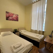 Стандартный двухместный номер с двуспальной кроватью или двумя односпальными кроватями, оборудованный всем необходимым для комфортного проживания: ЖК телевизор, собственная ванная комната с душевой кабиной, раковиной и туалетом. Гостям предоставляется постельное белье, полотенца, доступ к интернету. Номер находится на 5 этаже без лифта с удобной широкой лестницей.