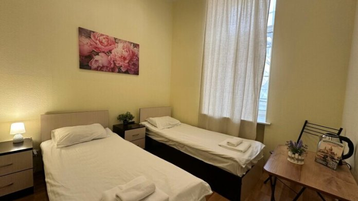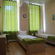 Бюджетный двухместный номер с двумя односпальными кроватями, оборудованный всем необходимым для комфортного проживания, кондиционер, ЖК телевизор. Ванная комната с душевой кабиной, раковиной и туалетом расположена на этаже (одна на 3 номера). Гостям предоставляется постельное белье, полотенца, доступ к интернету.