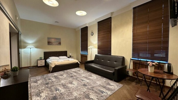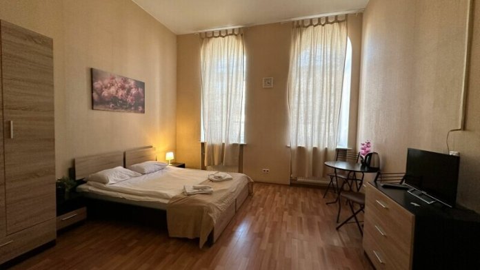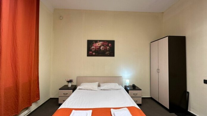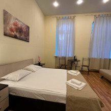 Четырехместный номер с двуспальной кроватью или двумя односпальными кроватями и двухместным диваном, оборудованный всем необходимым для комфортного проживания: кондиционер, ЖК телевизор, собственная ванная комната с душевой кабиной, раковиной и туалетом. Гостям предоставляется постельное белье, полотенца, доступ к интернету. Номер находится на 5 этаже без лифта с удобной широкой лестницей.