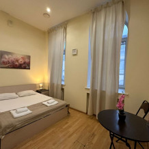 Бюджетный двухместный номер с двуспальной кроватью 140 см, оборудованный всем необходимым для комфортного проживания: ЖК телевизор, собственная ванная комната с душевой кабиной, раковиной и туалетом. Гостям предоставляется постельное белье, полотенца, доступ к интернету. Номер находится на 5 этаже без лифта с широкой удобной лестницей.