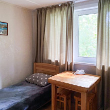 Кухонная зона на 3 номера (кухонный шкафчик, раковина, эл. чайник, мини-холодильник), санузел на 3 номера (душ, унитаз, раковина, зеркало, водонагреватель, г/х вода, туалетные средства).