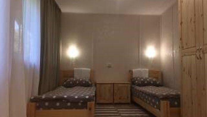 В номере: две односпальные кровати (формируются в 2-спальную), диван, шкаф для одежды, стол, стулья, ТВ.