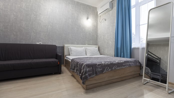 Уютная и функциональная квартира площадью 35 м² с балконом, где можно насладиться чашечкой чая. Два просторных дивана (160×200 см) и двухъярусная кровать (1 ярус - 160*200см, 2 ярус - 90*200см) обеспечат комфортный отдых до 6 гостей. Современная и полностью оснащенная кухня, где Вы найдете всё необходимое для приготовления и сервировки. Современный санузел с душевой кабиной, стиральной машиной и феном для Вашего удобства. Телевизор и кондиционер для создания идеальной атмосферы в любое время года.