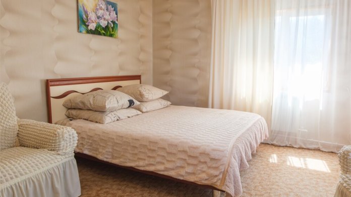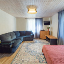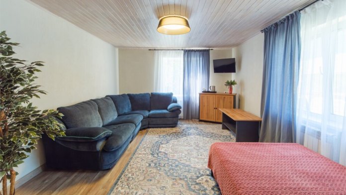Просторный и светлый номер на четверых. В номере расположен диван-кровать и небольшая двуспальная кровать (1,2 м ).