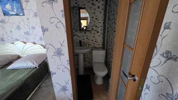 Просторный и светлый номер на троих. Уборная комната в номере.