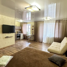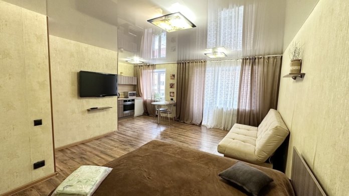 В квартире есть все для комфортного проживания. Комната: кровать, диван, телевизор, шкаф, журнальный столик. Кухня: обеденный стол, стулья, кухонный гарнитур, электроплита, холодильник, микроволновая печь, электрочайник, посуда и кухонные принадлежности. Санузел: ванна, стиральная машина. Интернет: беспроводной WiFi, кабельное телевидение. Гостям предоставляется постельное белье, кол-во оговаривается).