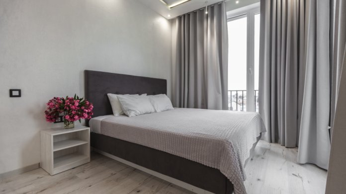 - Три окна наполняют пространство светом и открывают живописный вид на город.