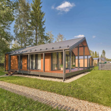 Комплектация дома: 3 спальни, кухня-гостиная, 2 двуспальные кровати, 1 двухъярусная кровать (нижний ярус - 120*200, верхний ярус - 90*200), раскладной диван, тумбы, комод, 2 шкафа, вешалки, 2 телевизора.