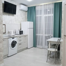 - Удобства: полностью оснащенная кухня с индукционной плитой, холодильником, электрическим чайником и микроволновой печью, а также вся необходимая посуда и кухонная утварь.