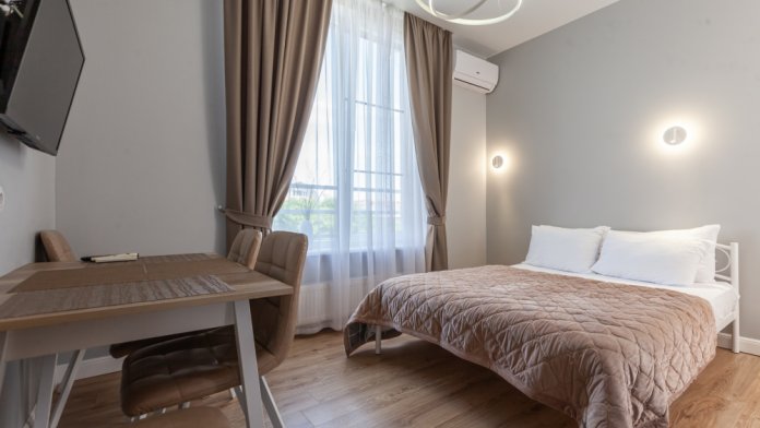 • Уютная студия без балкона, идеально подходящая для 1-4 гостей.