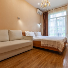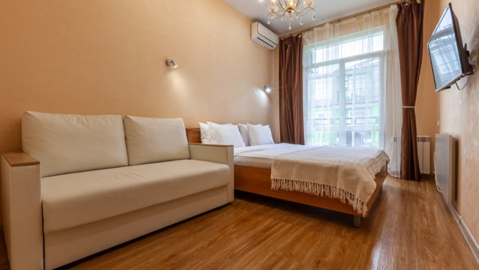 - Спальные места: комфортабельная кровать и два дивана, предлагающие идеальный отдых до 6 гостей.